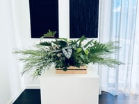 Cherish the memory of your loved one with Elfin, the casket top for plant lover. With non-slip pads, it securely hold 3 potted plants and features beautiful greenery. Keep this tribute and their memory alive.