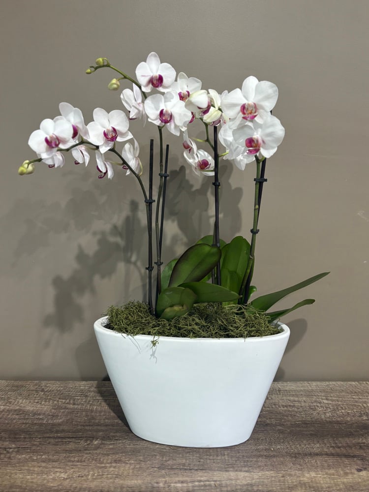 Get ready to set sail with On a Boat!! This stunning mini-Phalaenopsis are sitting on a ceramic pot is perfect addition as a luxury interior decor.